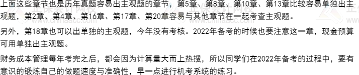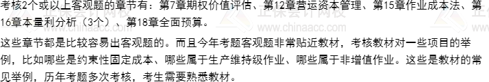 (2)注会财务成本管理共20章,客观题共25道,平均每章至少一个题目,个别章节会涉及两个或客观题。