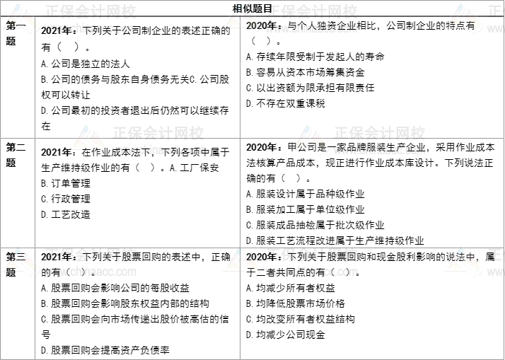 (3)历年试题客观题中存在重复性较高的题目,只是换一换表述,考核点基本相同。例如以下几个题目: