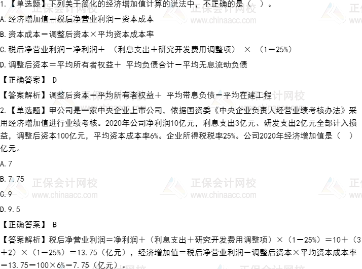 【知识点】简化的经济增加值的计算