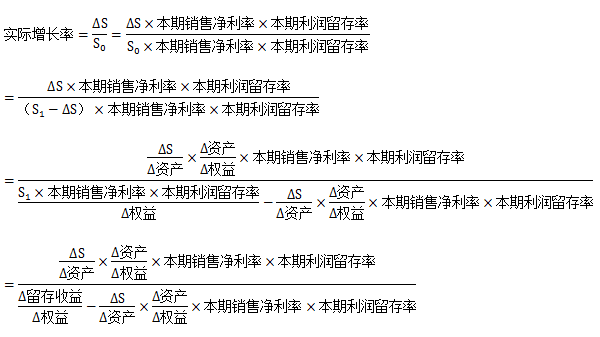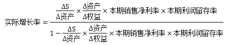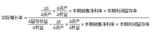 上述公式为实际增长率的通用公式。当然,为了能够与可持续增长率进行比较,需要考虑可持续增长率的前提假设条件:不增发新股。