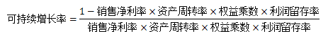 这个公式的表达方式与可持续增长率的表现方式如出一辙,只不过分子分母的资产周转率和权益乘数体现的是增量比的概念。