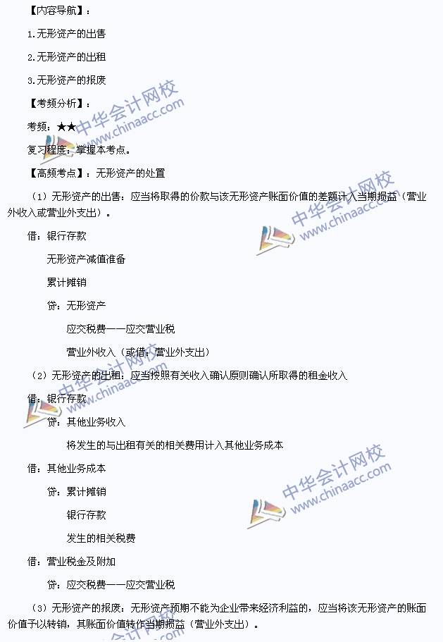 我们一起来学习2013注册会计师《会计》高频考点:无形资产的处置。本考点属于《会计》第六章无形资产第四节无形资产的处置的内容。