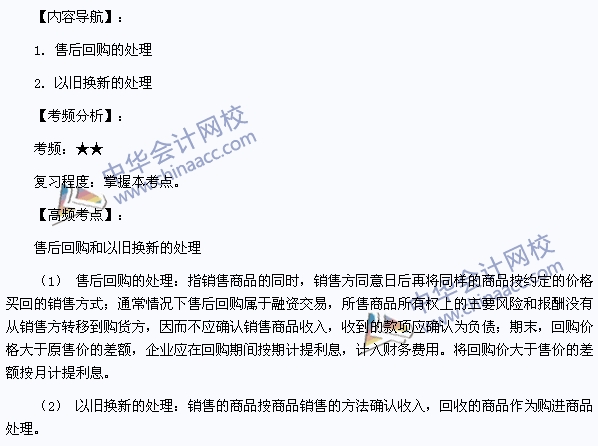 我们一起来学习2013注册会计师考试《会计》高频考点:售后回购和以旧换新的处理。本考点属于《会计》第十一章收入、费用和利润第一节收入的内容。