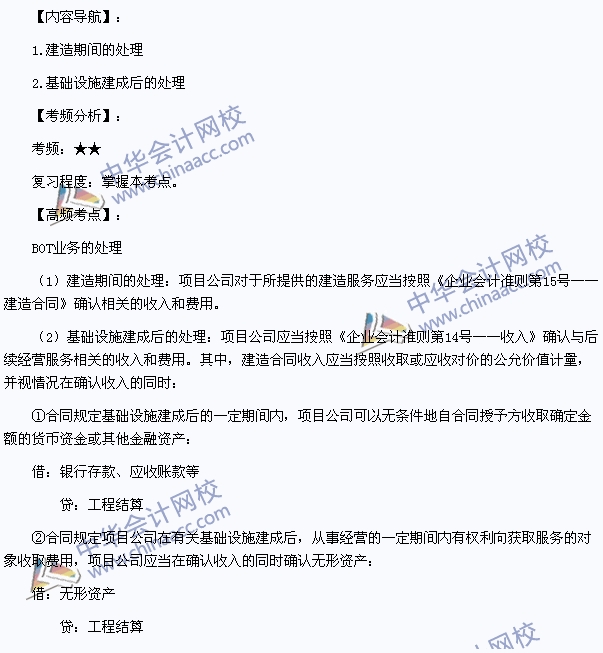 我们一起来学习2013注册会计师考试《会计》高频考点:BOT业务的处理。本考点属于《会计》第十一章收入、费用和利润第一节收入的内容。
