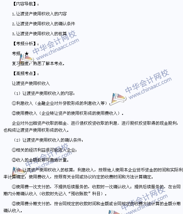 我们一起来学习2013中心会计师考试《会计》高频考点:让渡资产使用权收入。本考点属于《会计》第十一章收入、费用和利润第一节收入的内容。