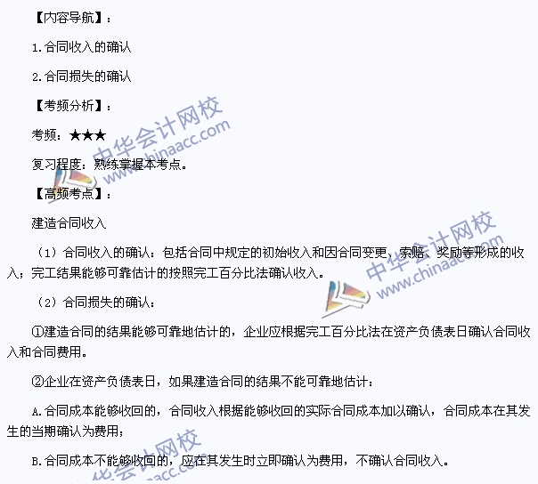 我们一起来学习2013注册会计师考试《会计》高频考点:建造合同收入。本考点属于《会计》第十一章收入、费用和利润第一节收入的内容。