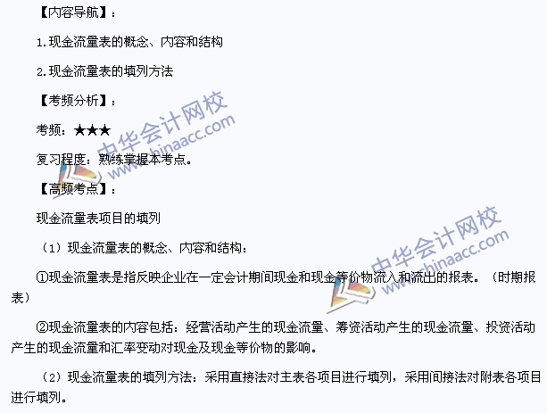 我们一起来学习201注册会计师考试《会计》高频考点:现金流量表项目的填列。本考点属于《会计》第十二章财务报告第四节现金流量表的内容。