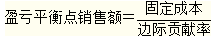 | 变动成本率bR | 变动成本/销售收入=单位变动成本/单价 | 边际贡献率+变动成本率=1 |