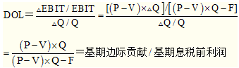 经营杠杆的大小一般用经营杠杆系数表示,它是息税前利润变动率与销售额(量)变动率之间的比率。其定义公式为:
