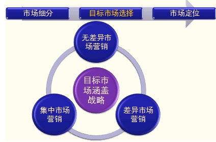 | 集中市场营销 | 指企业集中所有力量,以一个或少数几个性质相似的子市场作为目标市场,试图在较少的子市场上占领较大的市场份额 | 【优点】由于顾客对象比较集中,对一个或几个特定子市场的较深的了解,而且在生产和市场营销方面实行专业化,企业可以比较容易地在这一特定市场取得有利地位 【缺点】有较大的风险性 |