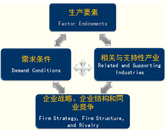 | 相关与支持性产业 | 对形成国家竞争优势而言,相关和支持性产业与优势产业是一种休戚与共的关系,例如产业集群的概念 |