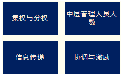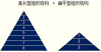 一般包含更少的管理层次,并将决策权分配到较低的层级,从而具有较宽的管理幅度并呈现出扁平型结构。