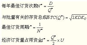 由于变动订货成本和变动储存成本与订货量是反方向变化的,因此,令二者相等,即可得出经济订货量的基本公式。