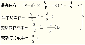 设每批订货数为Q,每日送货量为P,每日耗用量为d,则: