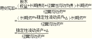 | 保守型政策匹配关系 | 波动性流动资产>短期性金融负债(临时性流动负债) 长期资产+稳定性流动资产<权益+长期债务+自发性流动负债 【分析】 ![]() 假设企业没有金融资产,则: (1)当处于营业低谷期时,波动性流动资产=0,则易变现率>1 (2)当企业处于营业高峰时,易变现率<1。 【提示】该政策下资本成本较高,风险与收益较低。 |