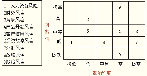 企业在评估多项风险时,应根据对风险发生可能性的高低和对目标的影响程度的评估,绘制风险坐标图,对各项风险进行比较,初步确定对各项风险的管理优先顺序和策略。