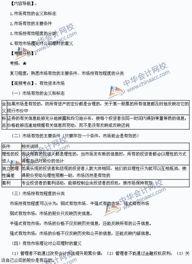 我们一起来学习2014年注册会计师《财务成本管理》高频考点:有效资本市场。本考点属于《财务成本管理》第十章资本结构第一节有效资本市场的内容。