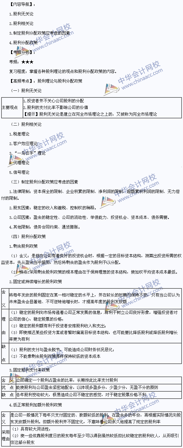 我们一起来学习2014年注册会计师《财务成本管理》高频考点:股利理论与股利分配政策。本考点属于《财务成本管理》第十一章股利分配第三节股利理论与股利分配政策的内容。
