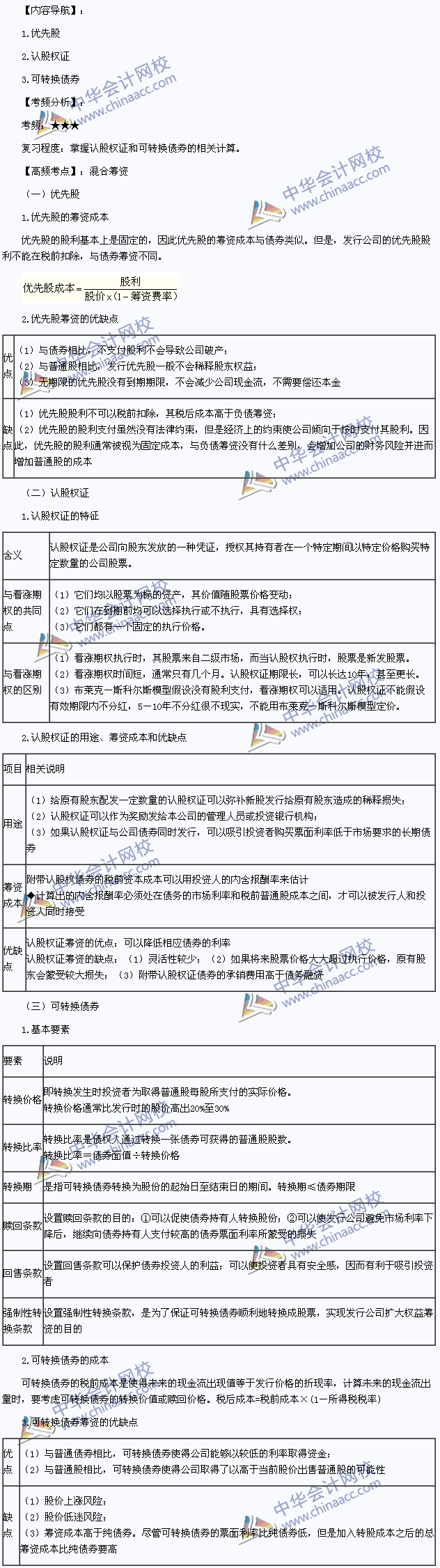 我们一起来学习2014年注册会计师《财务成本管理》高频考点:混合筹资。本考点属于《财务成本管理》第十三章其他长期筹资第二节混合筹资的内容。