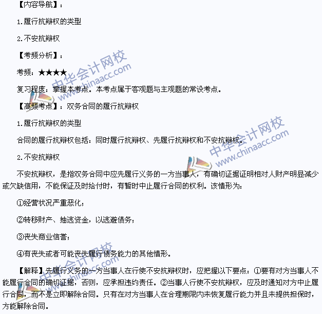我们一起来学习2014年注册会计师《经济法》高频考点:双务合同的履行抗辩权。本考点属于《经济法》第四章合同法律制度第四节合同的履行的内容。