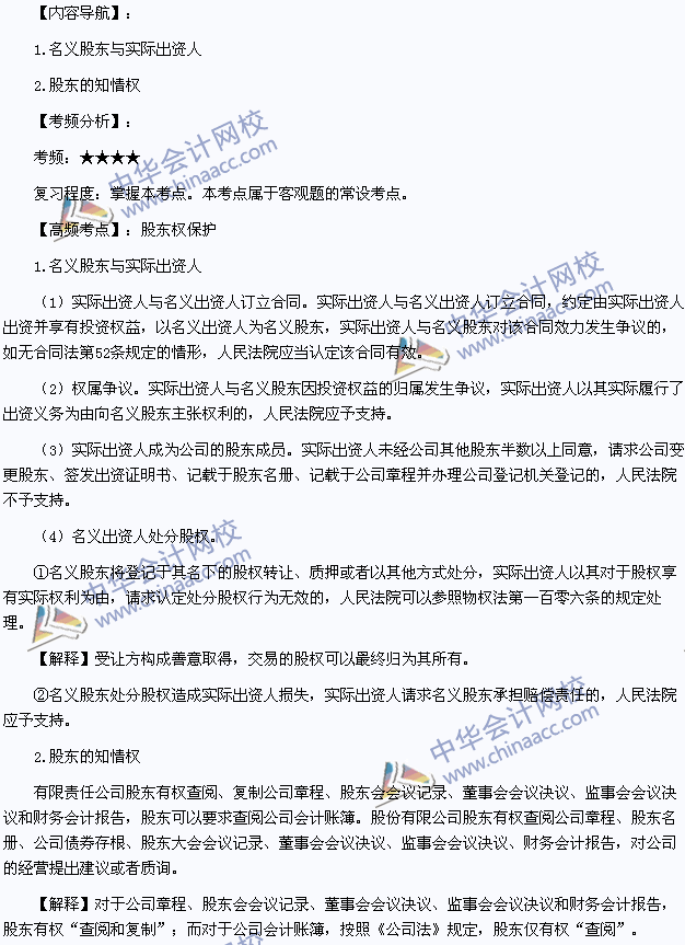 我们一起来学习2014年注册会计师《经济法》高频考点:股东权保护。本考点属于《经济法》第六章公司法律制度第一节公司法律制度概述的内容。
