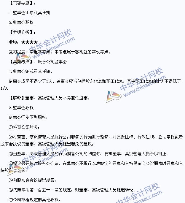 我们一起来学习2014年注册会计师《经济法》高频考点:股份公司监事会。本考点属于《经济法》第六章公司法律制度第二节股份有限公司的内容。