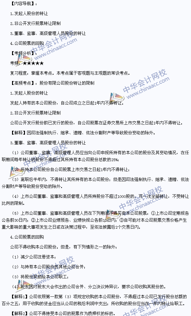 我们一起来学习2014年注册会计师《经济法》高频考点:股份有限公司股份转让的限制。本考点属于《经济法》第六章公司法律制度第二节股份有限公司的内容。