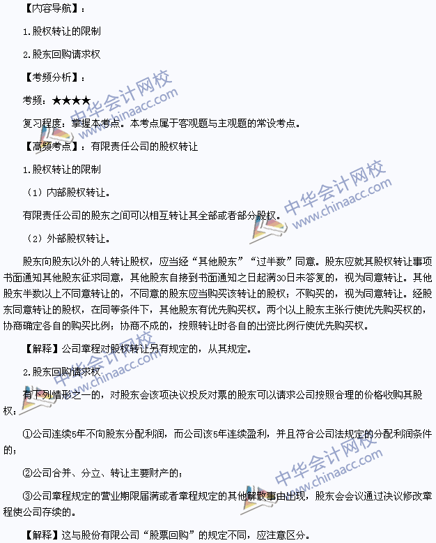 我们一起来学习2014年注册会计师《经济法》高频考点:有限责任公司的股权转让。本考点属于《经济法》第六章公司法律制度第三节有限责任公司的内容。