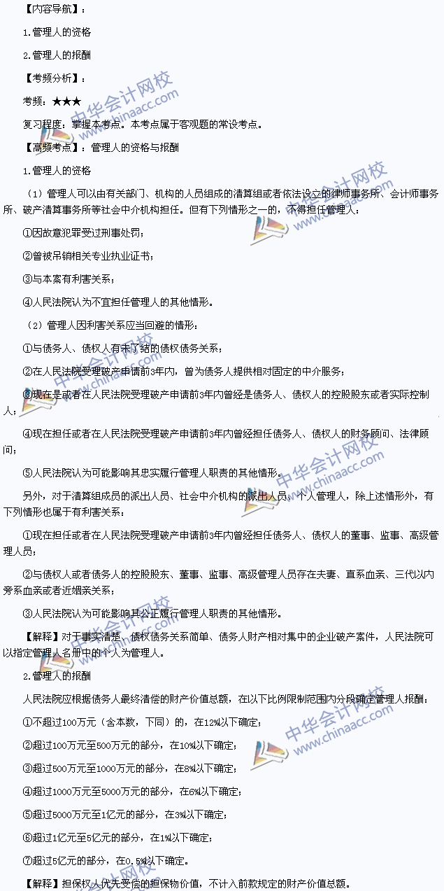 我们一起来学习2014年注册会计师《经济法》高频考点:管理人的资格与报酬。本考点属于《经济法》第八章企业破产法律制度第三节管理人制度的内容。