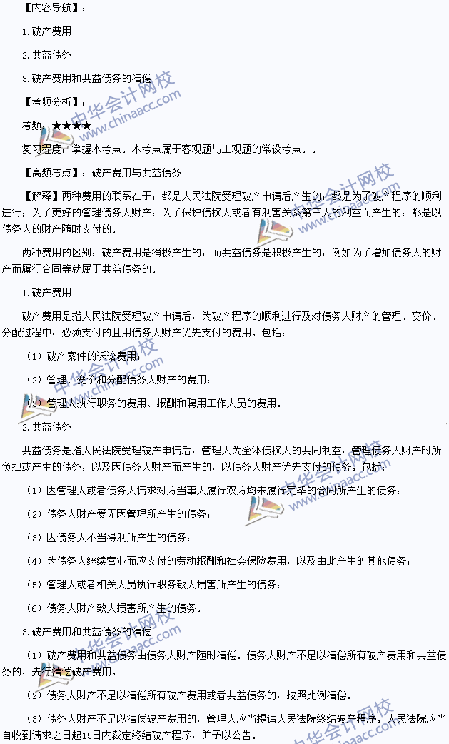 我们一起来学习2014年注册会计师考试《经济法》高频考点:破产费用与共益债务。本考点属于《经济法》第八章企业破产法律制度第四节债务人财产的内容。