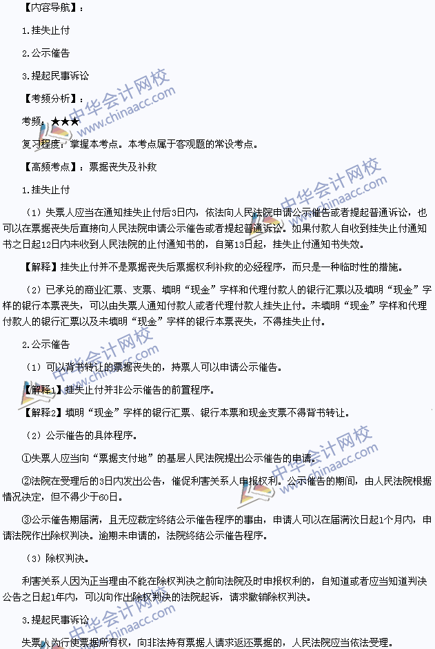 我们一起来学习2014年注册会计师《经济法》高频考点:票据丧失及补救。本考点属于《经济法》第九章票据与支付结算法律制度第二节票据法律制度的内容。