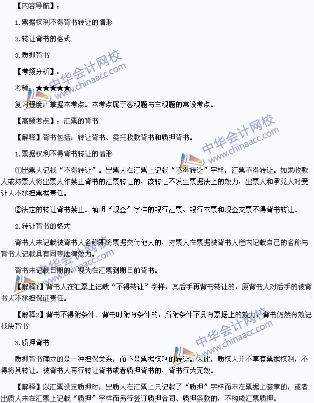 我们一起来学习2014年注册会计师《经济法》高频考点:汇票的背书。本考点属于《经济法》第九章票据与支付结算法律制度第二节票据法律制度的内容。
