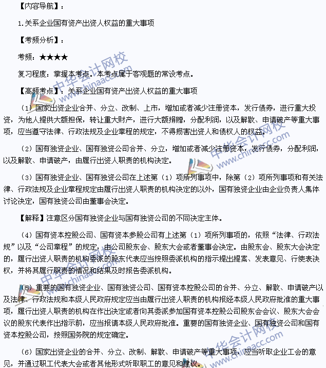 我们一起来学习2014年注册会计师《经济法》高频考点:关系企业国有资产出资人权益的重大事项。本考点属于《经济法》第十章企业国有资产法律制度第一节企业国有资产法律制度概述的内容。
