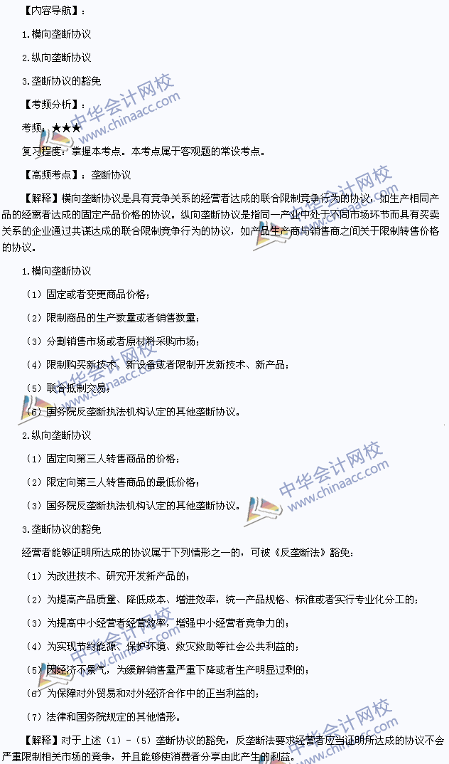 我们一起来学习2014年注册会计师《经济法》高频考点:垄断协议。本考点属于《经济法》第十一章反垄断法律制度第二节垄断协议规制制度的内容。
