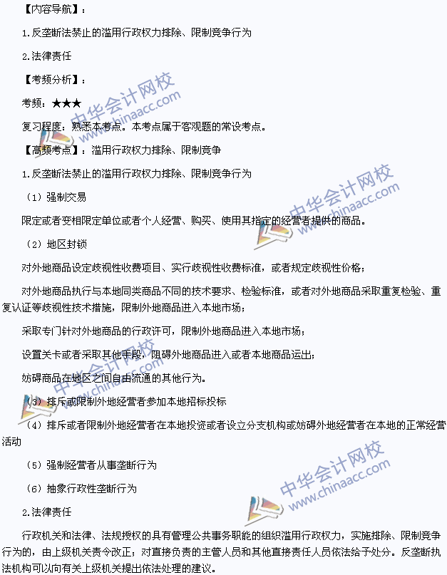 我们一起来学习2014年注册会计师《经济法》高频考点:滥用行政权力排除、限制竞争。本考点属于《经济法》第十一章反垄断法律制度第五节滥用行政权力排除、限制竞争规制制度的内容。
