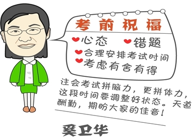 1.一定要注意以平和的心态应考,千万不要紧张,考前安排好作息,收拾好必备的工具及证件。