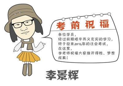 网校的各位学员,经过前期艰辛而又充实的学习,我们终于迎来2014年的注会考试,在这里呢,李老师祝福大家旗开得胜、梦想成真!
