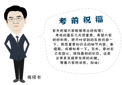 考前的最后几天还是挺重要的,希望大家好好利用,把我们平时学到的东西再巩固一下,熟悉一下重要知识点的细节内容,看一看错题,或者自己模拟考一下。另外,一定要对自己有信心,考场上保持最好的状态,这是正常甚至超常发挥的关键。