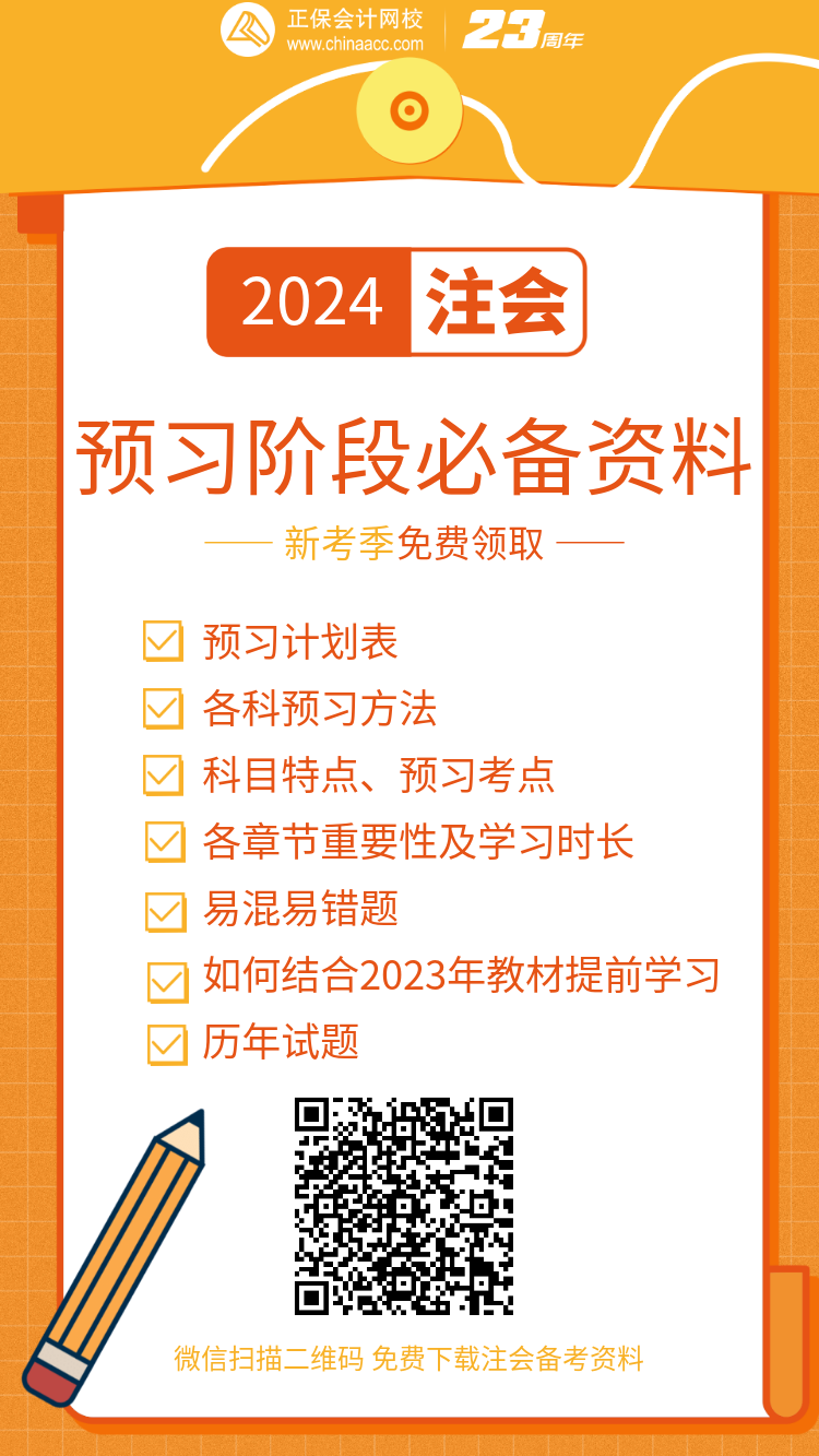 快来,网校小编已为您准备好了2024年注册会计师预习阶段备考必备干货资料,可以免费下载!
