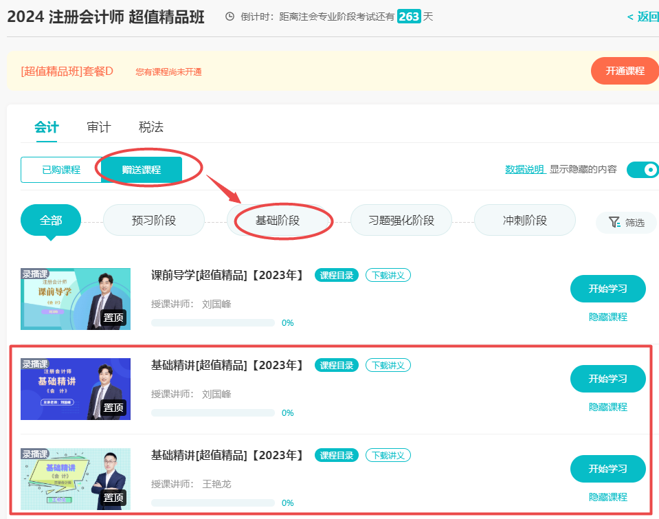 2024年注会预习阶段新课已开通,预习阶段课程学完了学什么?接着学赠送的2023年基础阶段课程,提前夯实基础!
