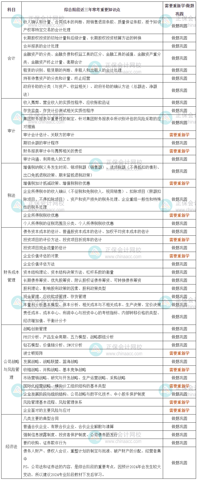 注会综合阶段近三年常考重要知识点汇总