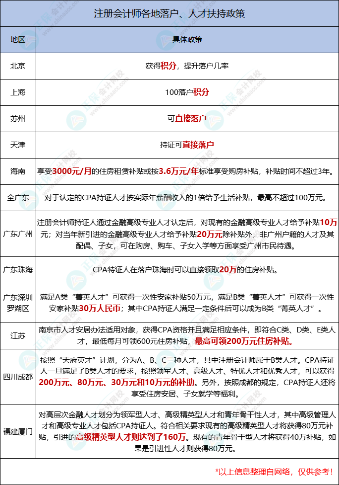 各大省市“抢人”大战不断,考下注册会计师证书,不仅坐拥高薪,还能享受到现金奖励、高额人才补贴、个税抵扣、落户积分等福利。