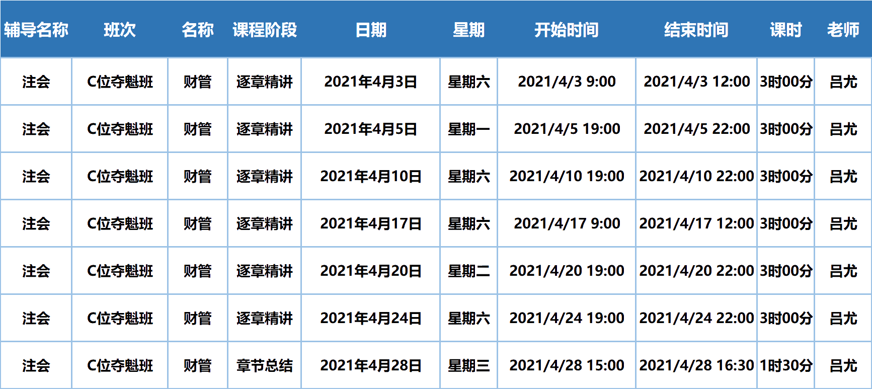 开课啦!开课啦!2021年注会C位夺魁班直播课表出来了~众所周知,注会是拉长线作战,每年都有考生一人孤军奋战,没有老师或同学一起探讨困难点,最后坚持一半直接放弃,最后后悔不已.....如果你你害怕自己坚持不下去,想要早点拿证,建议你趁早准备,趁早跟着老师步伐前进<<<查看2021年C位夺魁班