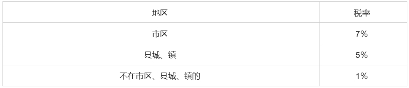 城市维护建设税实行地区差别比例税率,一共3档(7%、5%、1%)。