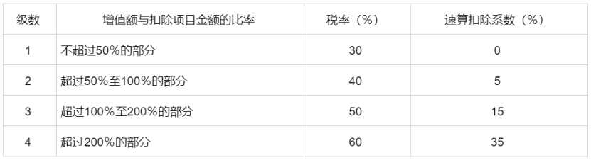 土地增值税实行4级超率累进税率。(得记住税率表)