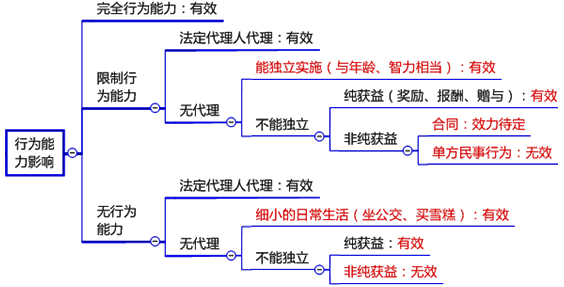 (4)行为人的民事行为能力的影响:
