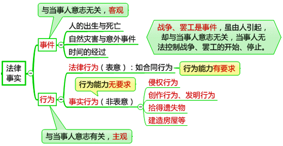 1.概念:法律事实是法律关系的变动原因,即能够引起法律关系产生、变更和消灭的客观现象。