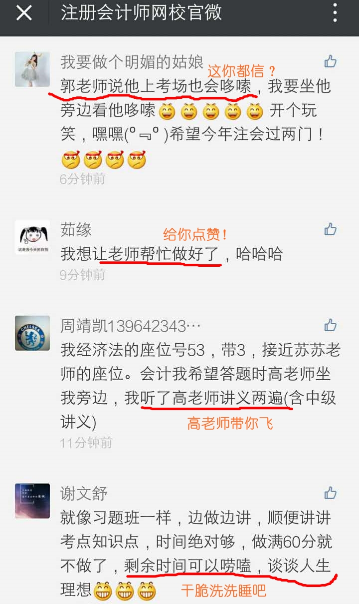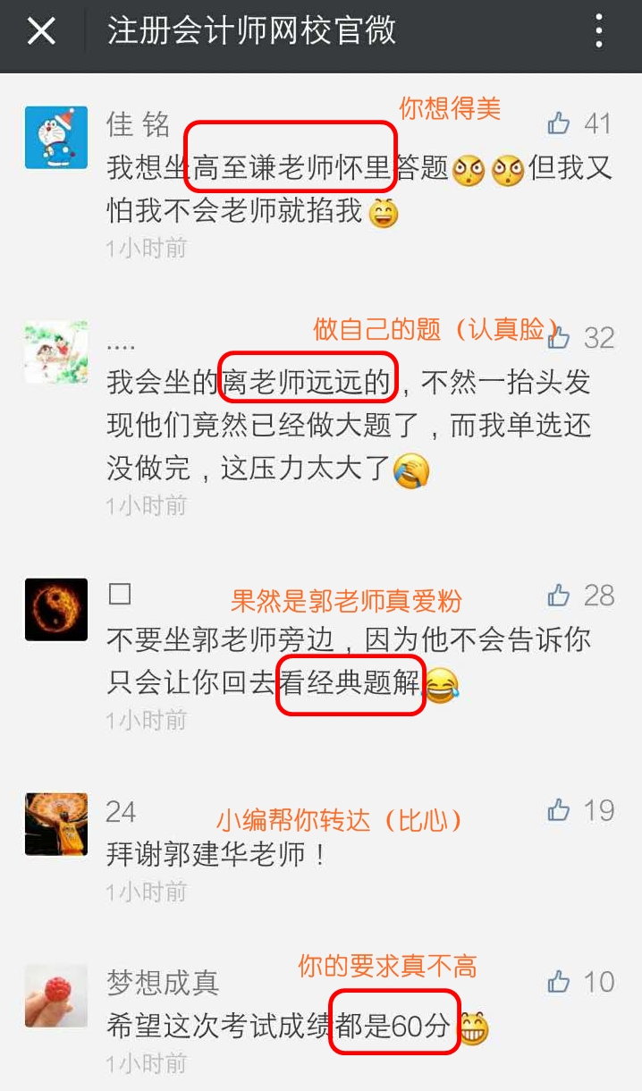 想到跟老师们同考场就很爽吧?是不是很快就选出来了? 这不,网校的小伙伴们已经自行脑补啦: