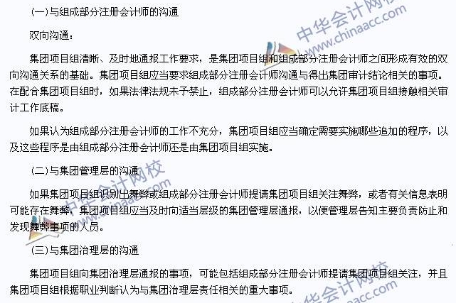 与组成部分注册会计师的沟通: