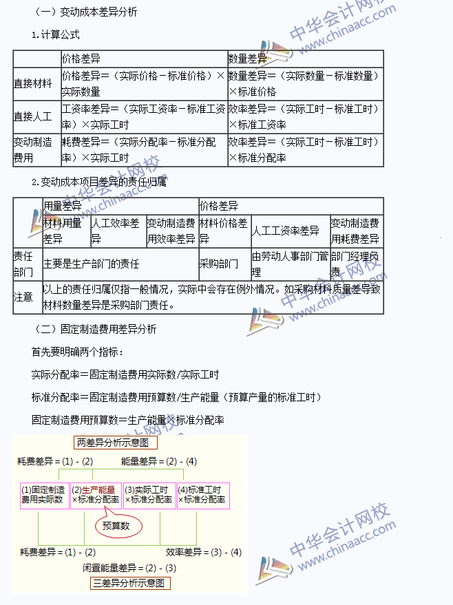 标准成本的差异分析: